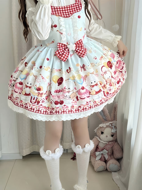 1pc Lolita Style Cute Cute Overalls Dress | Square Neck, Animal Pattern, Bow Detail, Suitable for Festival Parties and Valentine'S Day Gifts